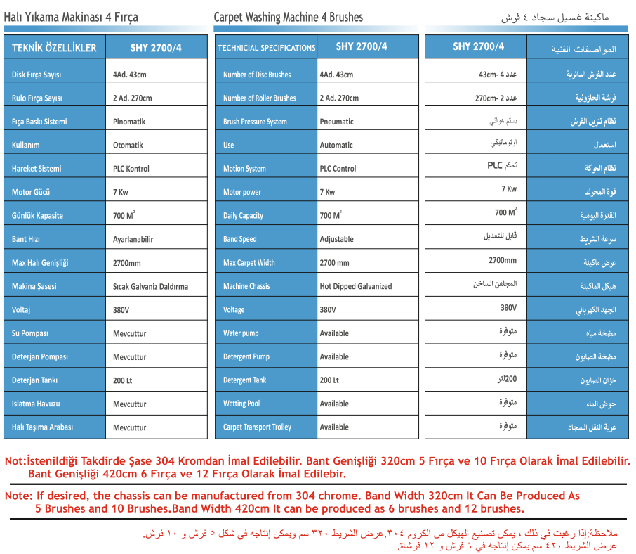 2026 Model Tam Otomatik 4 Fırçalı Krom Halı Yıkama Makinası